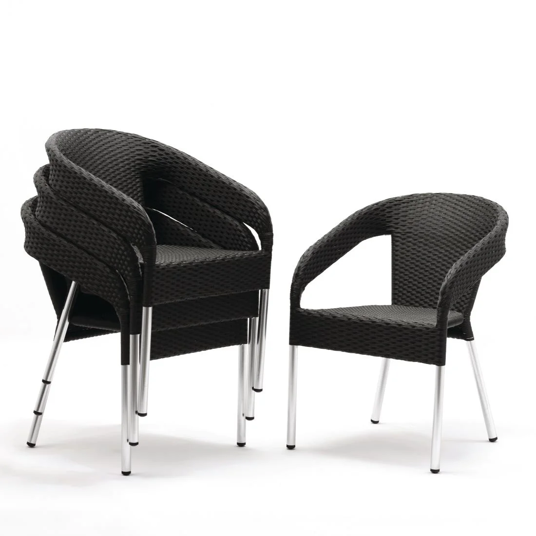 Aluminium Frame. PE Wicker Seat. Seat Height: 450mm. Stackable