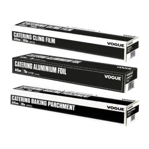 Pack Includes: 400m Vogue Cling Film, 75m Vogue Aluminium Foil and 50m Vogue Baking Parchment