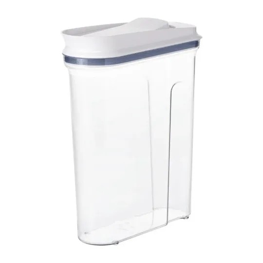 Cereal boxes can be cumbersome; taking up valuable cupboard space. The cereal dispenser by OXO act as a way to permanently store cereal which can be topped-up at any time.