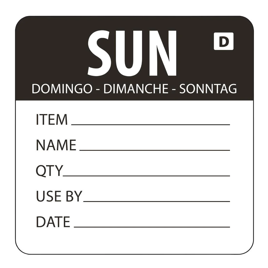 Sunday - Black. 2" labels