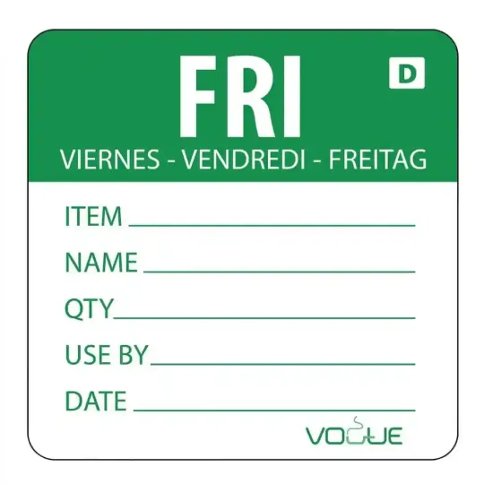 Dissolvable colour coded food safety labels to work alongside days of the week rotation systems. Roll of 250.