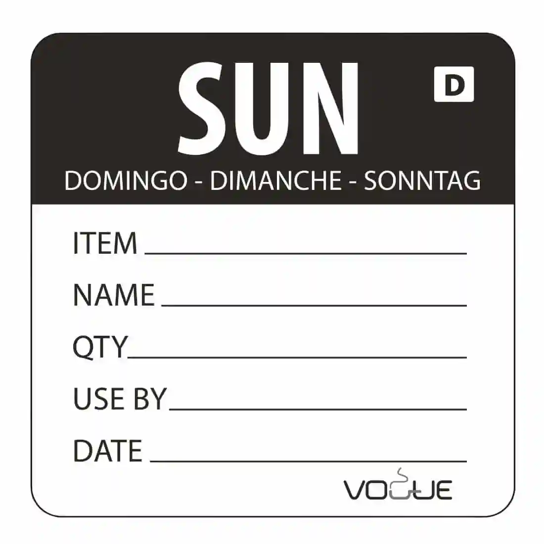 Sunday. Roll of 250 2″ labels