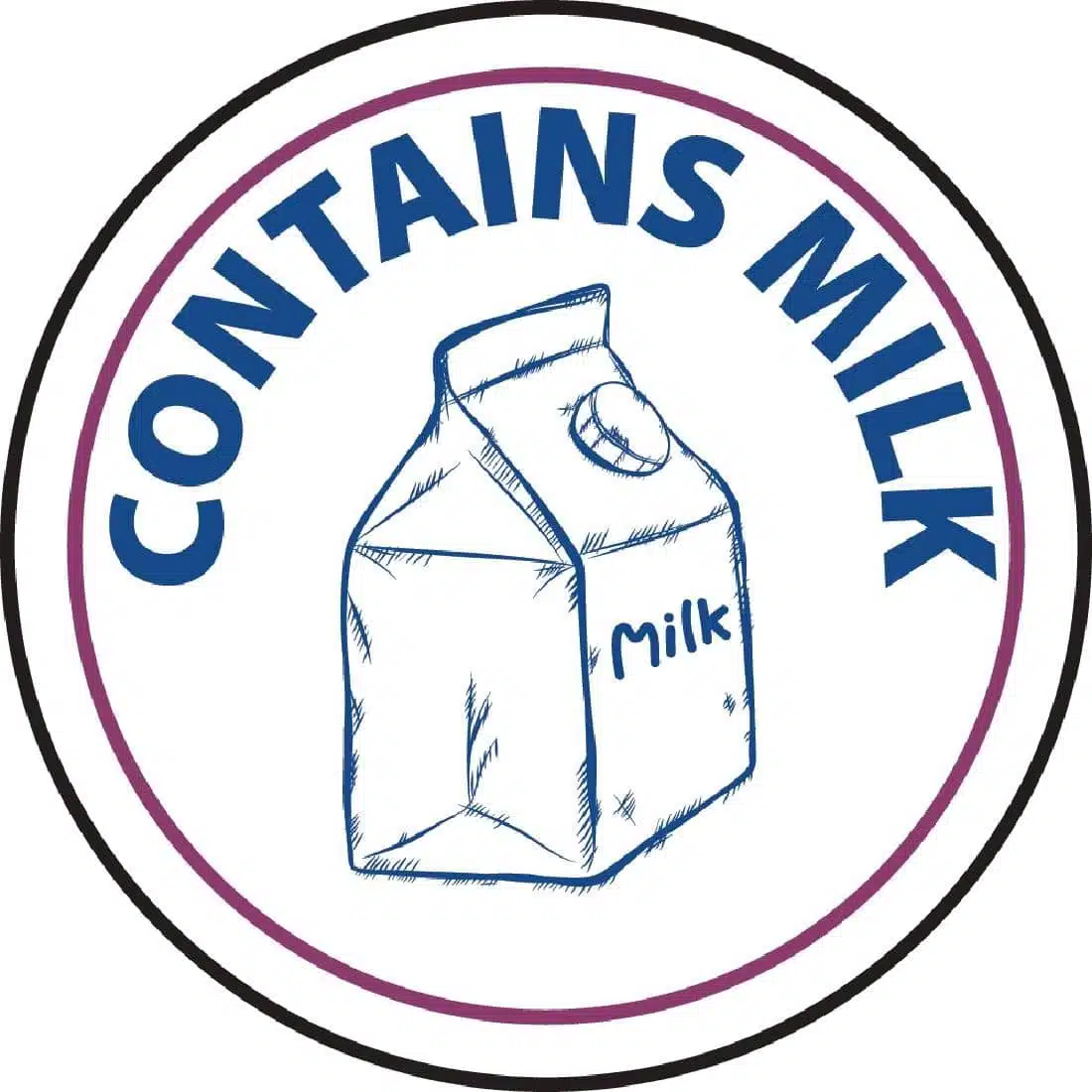 An easy to peel 1 inch round sticker that leaves no residue and is used to display that a food contains milk. Whilst it has always been important to people with allergies to be aware of what is contained within food, since December 13th, 2014, it has become part of legislation to list and highlight any of the fourteen allergens contained within the regulatory list. Milk is a common ingredient of butter, cream, cheese, milk powders and yoghurt.