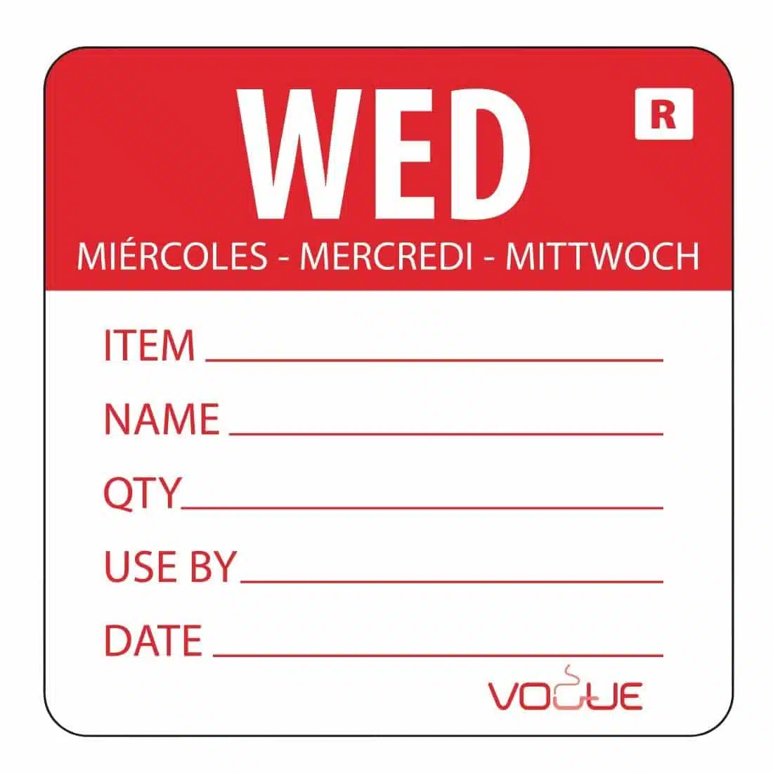 Colour coded food safety labels to correspond with your day-of-the-week rotation system. See at a glance when food was prepared. Indicates use – by date on ready to eat foods. Easy to remove leave no residue. Supplied in rolls of 500. Available in individual rolls or a set of 7 rolls – one for each day. Label size: 49 x 75mm.