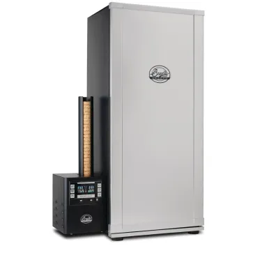 Widely used by gourmet chefs for hot and cold smoking, this Bradley original electric digital food smoker is easily ventilated and portable for indoor and outdoor use. Made from powder epoxy coated steel and with an aluminium interior, the machine features temperature monitoring control for even smoking and contains six shelves. For outdoor use only. Do not operate in an enclosed area.