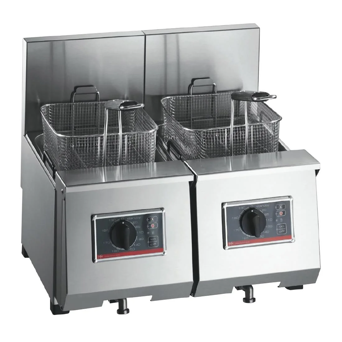 Twin tank, four baskets. 2x 6.9kW Three phase. 2x 22kg/hr