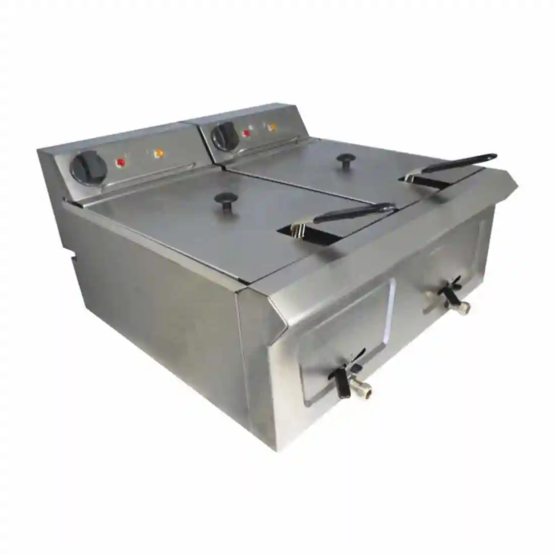 Simple to use commercial deep fat fryer, ideal for the countertop of any busy restaurants or hotels that need a fast cooking option. The thermostatic control is great for accurate temperature control, while the twin pan design allows you to cook several foods at once without any flavour transfer. Made from robust stainless steel, lift-out elements, and featuring oil taps for easy draining, this is a convenient and practical fryer from a renowned brand. Supplied with two fryer baskets and two lids.