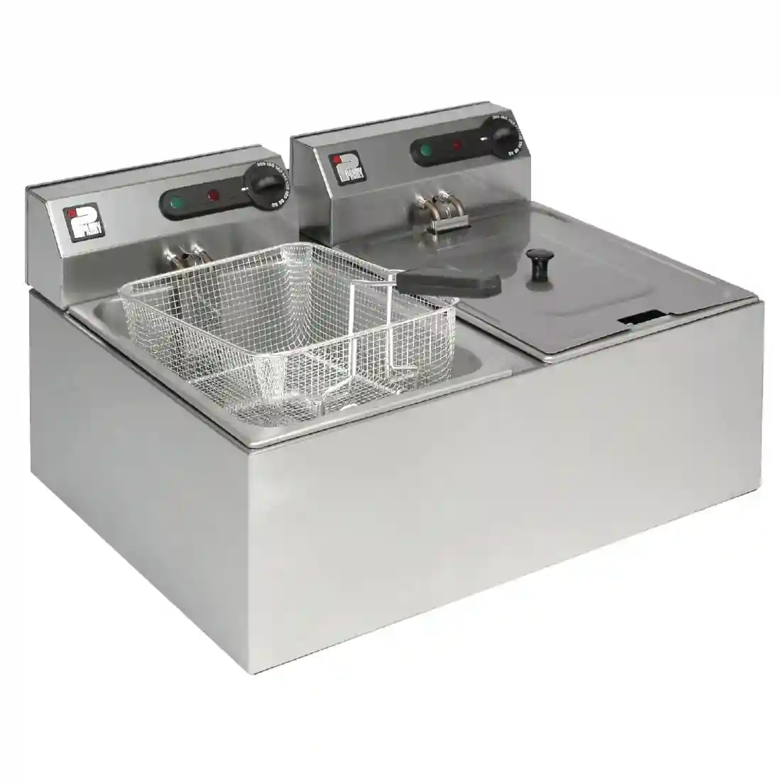 This countertop deep-fat fryer from Parry features a lift-out control panel, head and tank for easy cleaning and maintenance. Designed with economy in mind, it has large capacity tanks for a high output and is supplied with a batter plate and lid. The tanks are also completely separate, helping to prevent cross contamination and improve cost effectiveness during quieter periods.