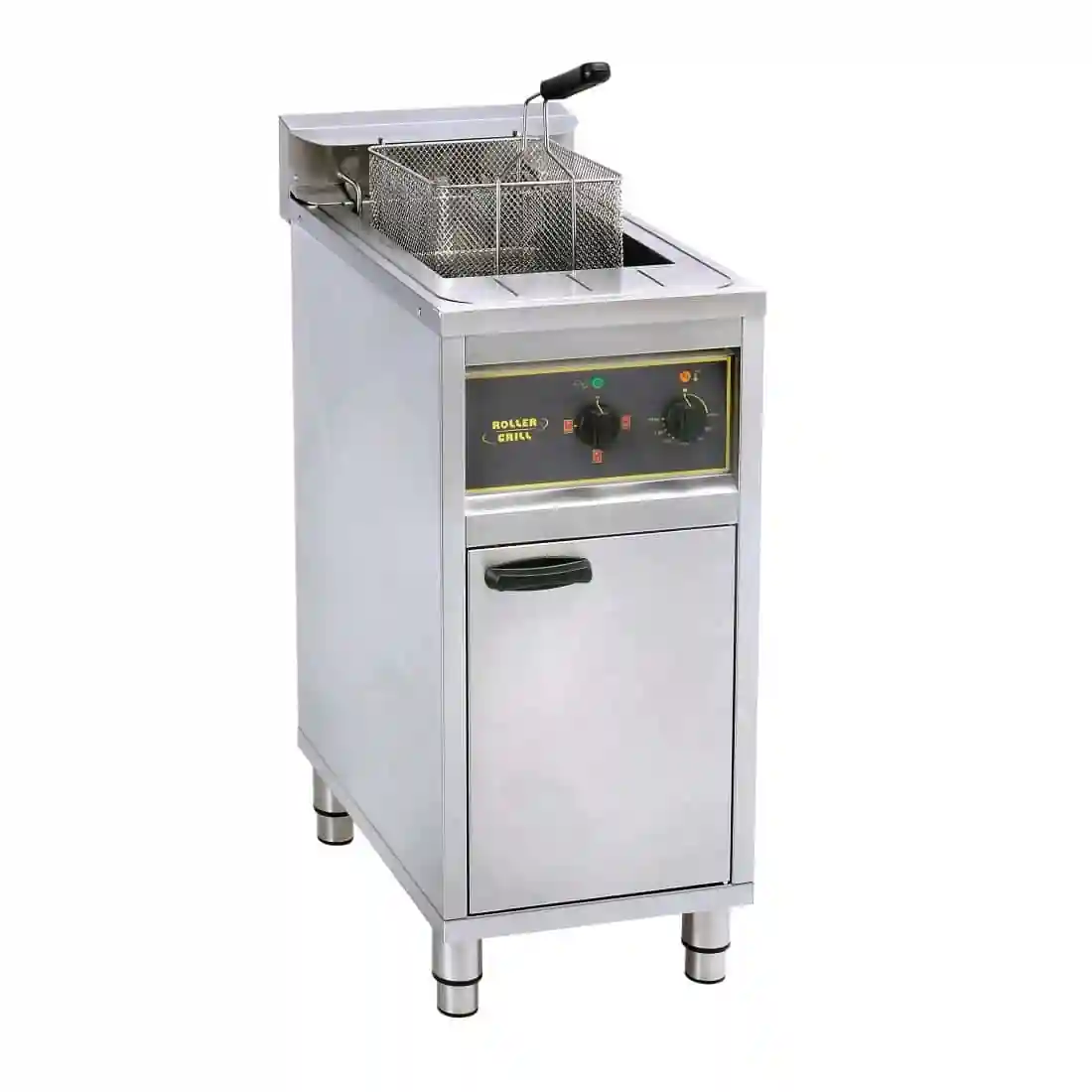 Cook and prepare chips and other fast foods with the Roller Grill RFE16C Single Fryer, a comprehensive frying unit that uses individual heating elements to provide ideal cooking settings for separate foods and cut down on wasted energy. Using any or all of the three heating elements, you can select the power level you want, be it for holding oil temperature, or cooking fresh and frozen food. Compatible with both a single whole or two half baskets, the control box and filter cover of the fryer can both be removed for ease of cleaning. The holding temperature setting on the device combined with efficient “mini-maxi” insulation to extend the life of each oil batch.