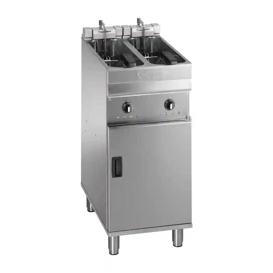 Compact, reliable and exceptionally powerful, the Valentine EVO 220P Twin pan electric fryer is a great solution for effective and efficient commercial food frying in restaurants, canteens or takeaways with limited space. Whether you’re frying fish, chips, doughnuts or tempura, the Evo 220 helps you save money on oil and energy. The oil pans themselves have a smaller cool zone than other comparable fryers, meaning you don’t need as much oil to fill the fryer and less energy is used to get the oil up to cooking temperature. The addition of a high quality filtration system helps to extend the lifespan of the cooking oil.