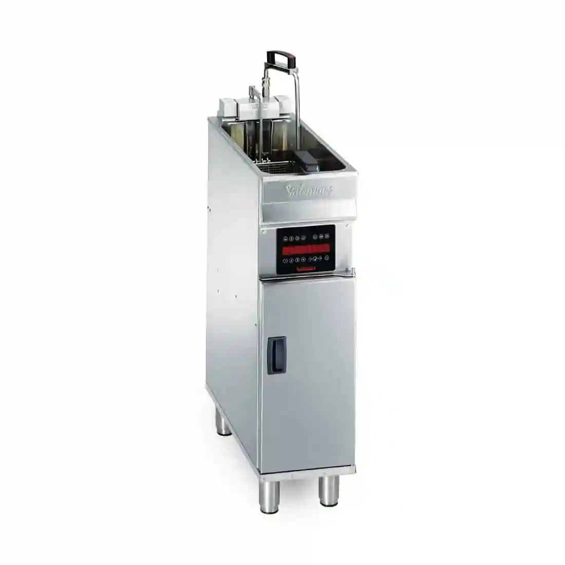 Incredibly compact and exceptionally powerful, the Valentine EVO 250 single pan electric fryer is a great solution for effective and efficient commercial food frying in restaurants, canteens or takeaway with limited space. Whether you’re frying fish, chips, doughnuts or tempura, the Evo 250 helps you save money on oil and energy. The oil pan itself has a smaller cool zone than other comparable fryers, meaning you don’t need as much oil to fill the fryer and less energy is used to get the oil up to cooking temperature.