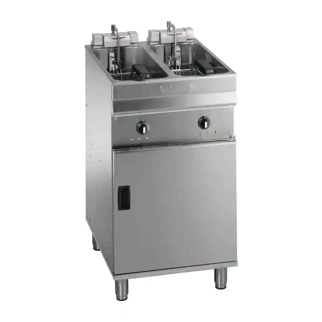 Part of the innovative new Evolution range of Valentine fryers, the Evo 2525P fryer has been designed to save time and energy, as well as significantly reducing overall oil costs. With two separate tanks and baskets, you can cook fish, chips, doughnuts and more separately to prevent cross-contamination, or just use a single tank during quieter hours to save energy. To assist with the cleaning process, the fryer tank is pressed from a single piece of high quality stainless steel, meaning smooth edges and a round, easy-clean profile. The addition of a high quality filtration system helps to extend the lifespan of the cooking oil.