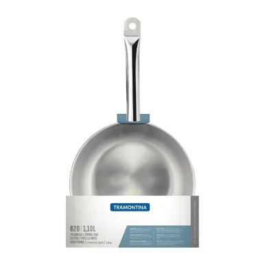 The Tramontina 20cm stainless steel frying pan offers durability and increased cooking performance at an affordable price. The triple layer base, which comprises a sandwich of stainless steel, aluminium, then stainless steel, ensures even heat distribution and more efficient cooking.