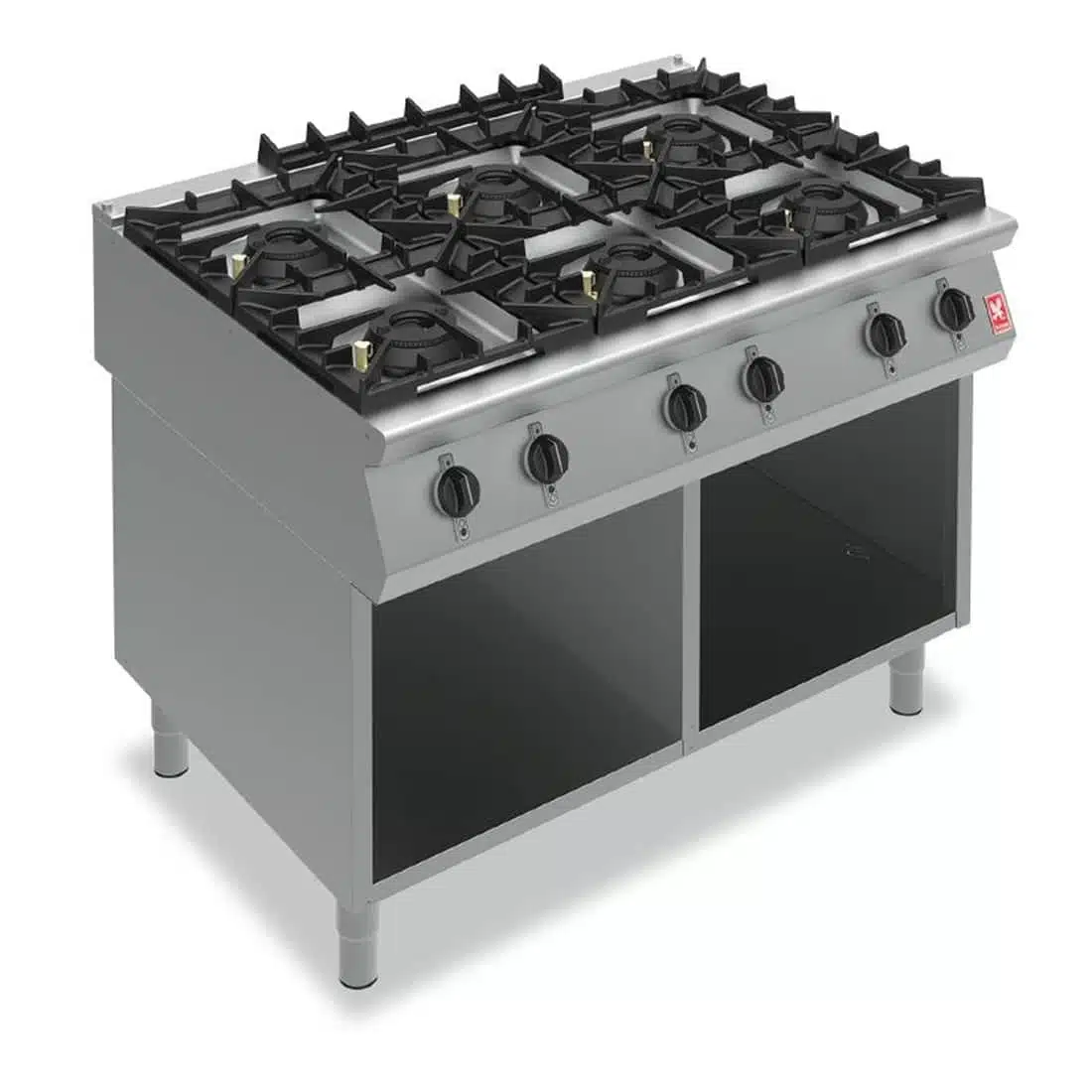 The G90126 features 5 high powered 9.5kW burners and 1 x 4.2kW burner. The deep drawn pressed wells in the one piece hob contain spillages and wide raised corners prevent grease and grime build up and are easy to clean and keep clean. Individual cast iron pan supports and 2mm thick 304 culinary grade stainless steel construction provide robustness and longevity. The laser cut hob enables edge to edge joining of equipment, providing the benefits of a cooking suite with the advantages of separate units.