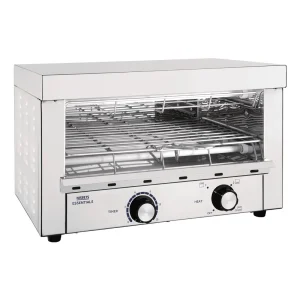 Salamander wall grill with individually controlled dual zone cooking. Automatic ignition and thermostatic control. Available in natural gas or LPG powered versions – please select from the drop-down menu. Flame failure device Branding plate, toast rack and crumb tray included Variable control Automatic ignition Multiple rack positions