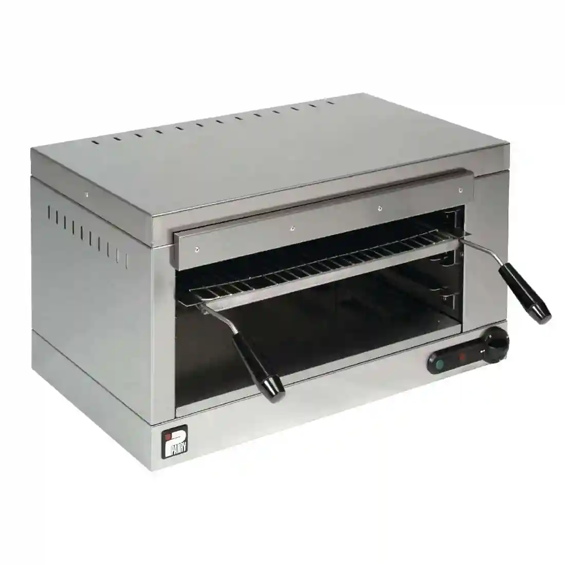 A free standing or wall-mounted stainless steel Parry modular electric Salamander grill, ideal for grilling a wide variety of foods including meat, vegetables and sandwiches, as well as toasting. Supplied with a grill pan and toasting rack, the grill features solid heating elements for consistent cooking results.