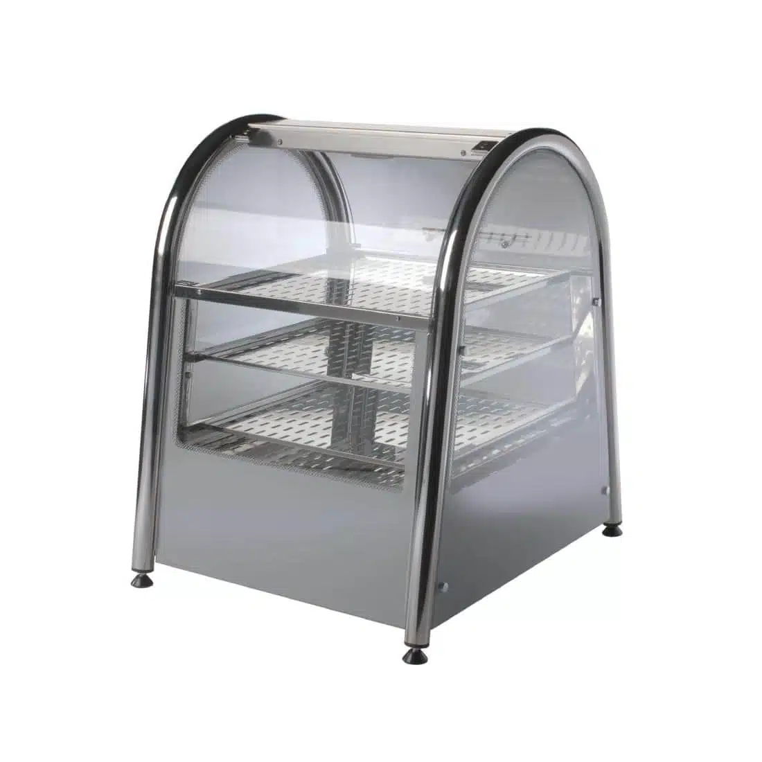 Perfect for front of house use, the King Edward Vista Hot Food Display is a stylish and versatile food storage and merchandising solution. Constructed from stainless steel, polished chrome and toughened glass, the Vista offers a full 360° visibility of its contents, attractively presenting your foods and promoting impulse purchases, ideal for pies, pasties, croissants and other bread products.