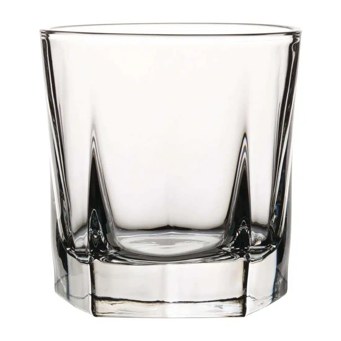 These rocks glasses have the style and quality needed to breathe new life into your glassware collection. The glasses are suitable for serving everything from whiskey on the rocks and juices to soft drinks and tap water. A sleek pentagon design makes these glasses incredibly sleek and stylish, adding a premium touch to your drinks presentation. This heavyweight pentagon base also gives the glasses added stability, helping to prevent spills and breakages if knocked.