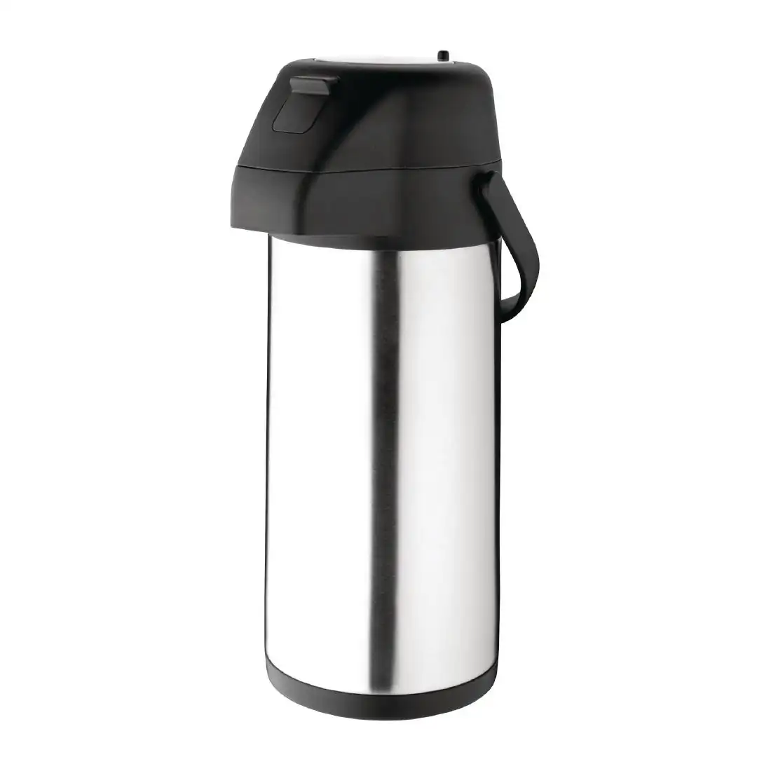 This stainless steel airport from Olympia is designed for easy transportation and to withstand extensive use in busy businesses. Whether finishing a breakfast buffet or catering to corporate customers, the pump action pour and non-drip spout keeps customers safe. The stainless steel interior is less prone to breakages than glass alternatives, whilst a drip tray is available separately (GF992) to guard against overfilling and customer clumsiness.