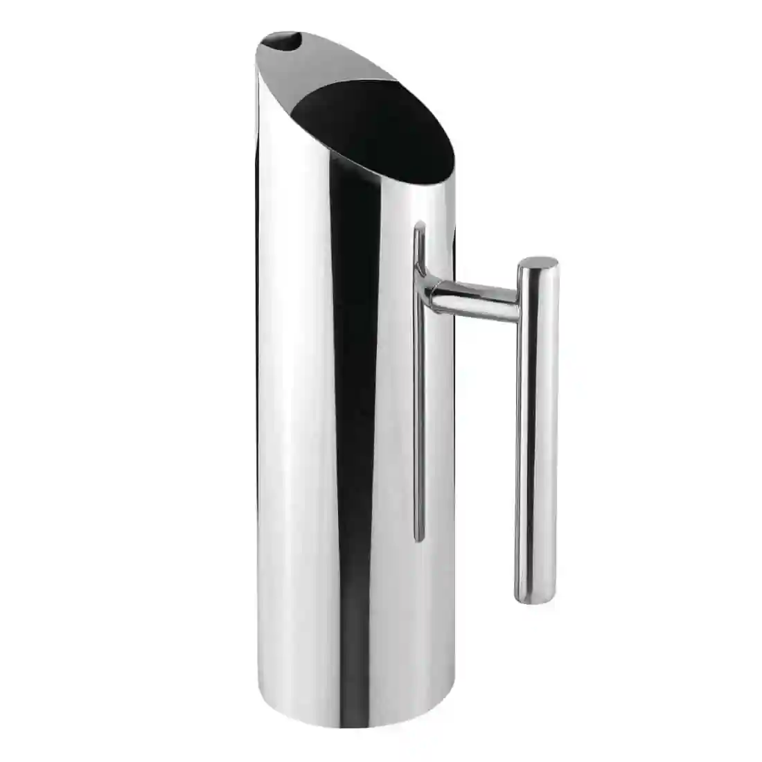 Striking stainless steel water jug perfect for professional beverage presentation. Controlled pouring through covered spout.
