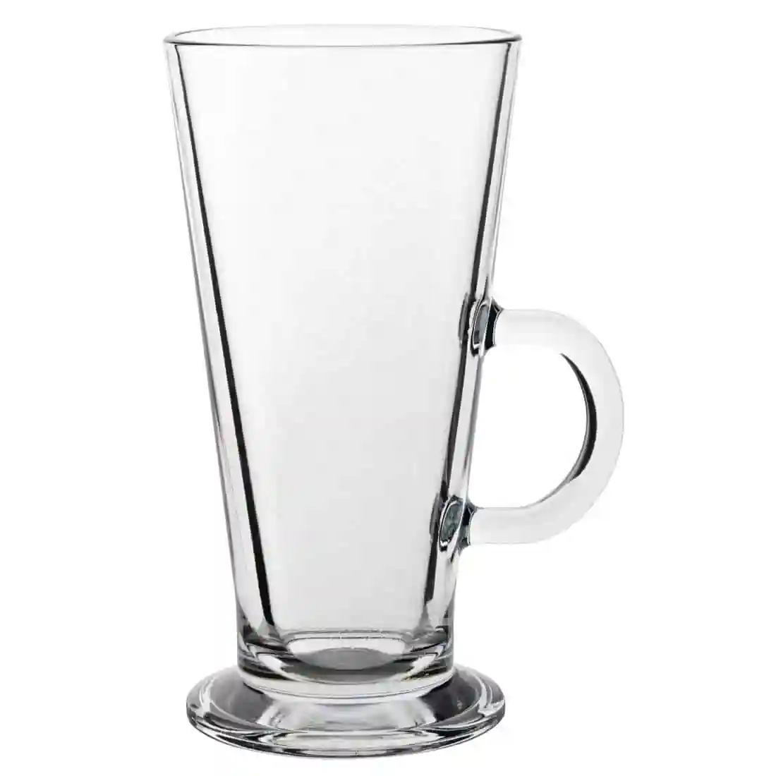 Classic tall conical latte glass. Toughened for added resistance to thermal shock from hot drinks. Glasswasher safe.