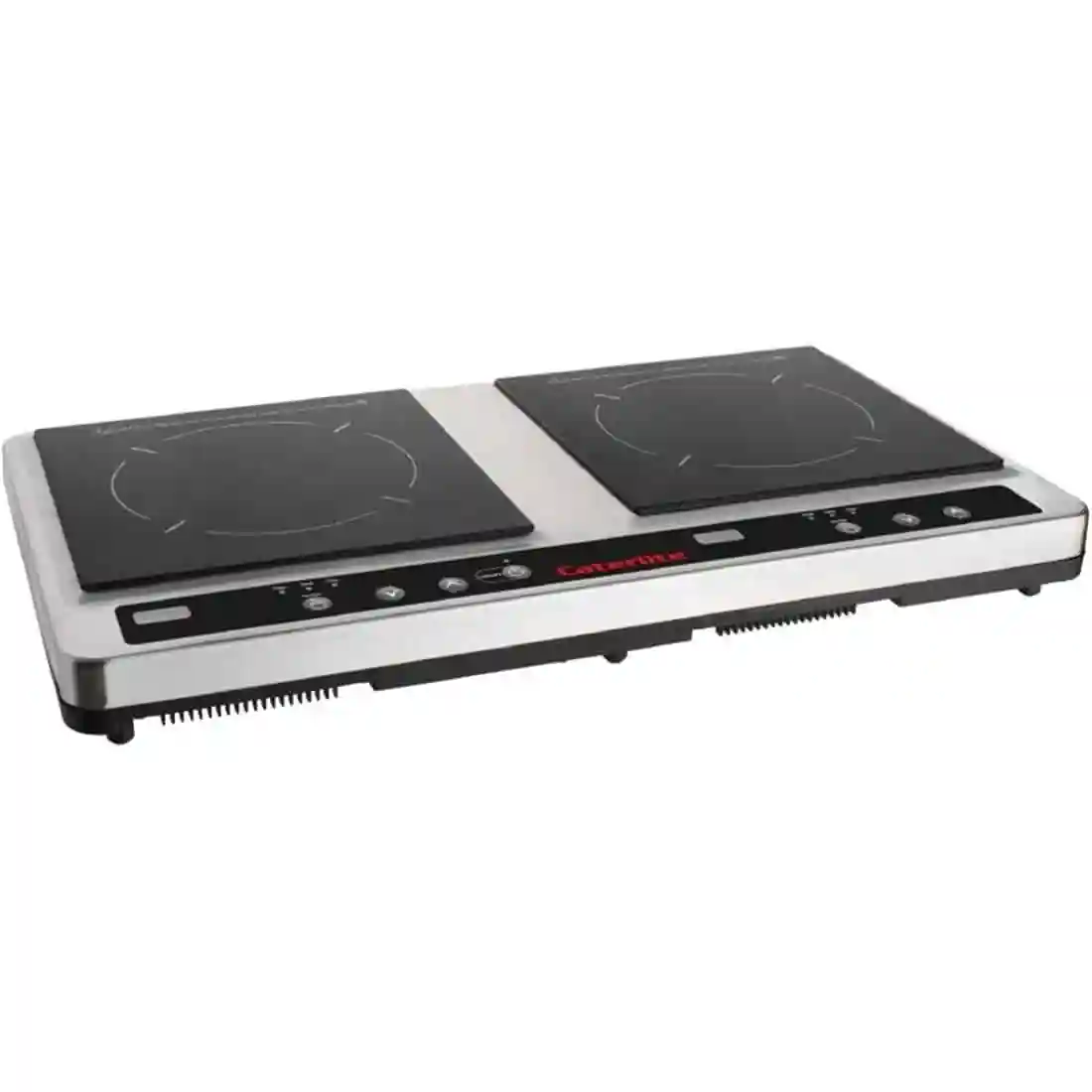 Stainless Steel cover and black ceramic glass hob with auto shut off , overheat protection and LED display. Suitable for use with induction compatible pans only.