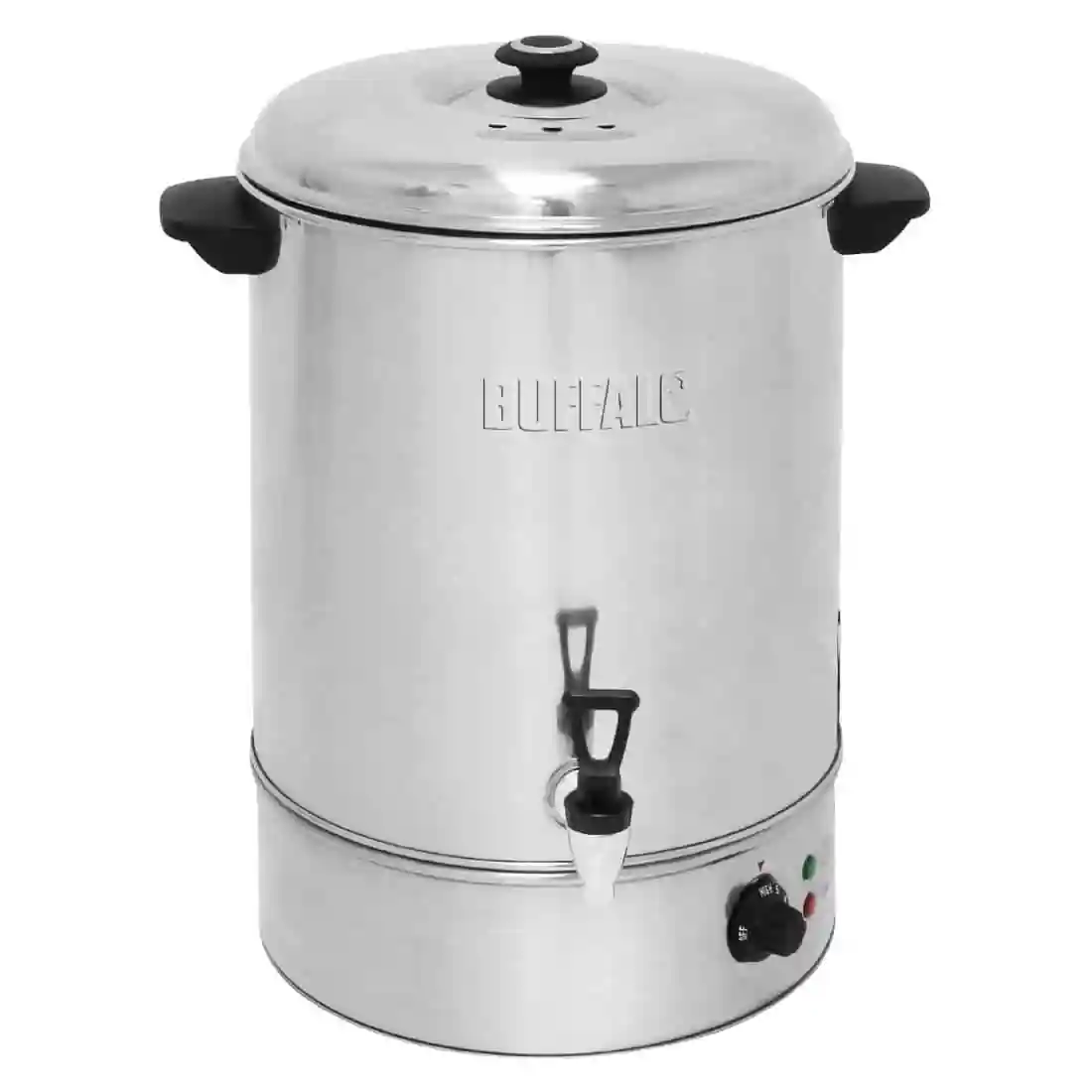 Keep your guests or colleagues refreshed with piping hot teas and coffees served with water from the powerful and versatile Buffalo 40Ltr manual fill water boiler. As a manual fill urn, the Buffalo is a great choice for sites with limited access to mains water. Making it ideal for mobile caterers, village halls, offices and staff rooms, the Buffalo is a portable solution which allows you to bring hot water to where areas it’s needed most.