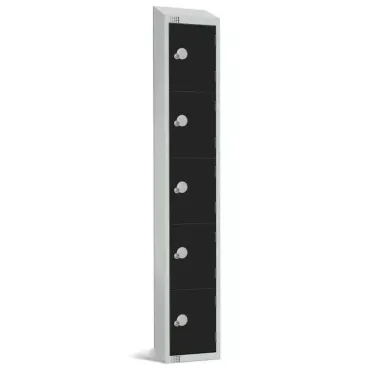 These secure and reliable 5 door Elite lockers will keep personal possessions safe in a range of different settings and environments. Particularly popular in health and educations sectors, these units have a robust steel frame and reinforced doors for an impressive level of security. The handy coin return mechanism means you’ll always know where the keys are when the lockers are not in use. The door locks are compatible with both old and new £1 coin. The units also have sloping tops and a treatment that makes them resistant to MRSA and E-coli for use in hygiene-critical settings.