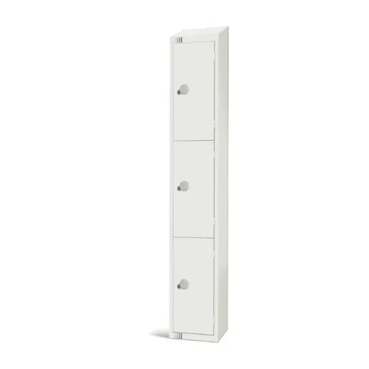 These highly durable lockers from Elite benefit from a welded steel frame construction and reinforced doors, providing added strength and security. The lockers also feature an antibacterial coating which is effective against MRSA and E-coli, making them perfectly suitable for use in schools, leisure centres and gyms where a high standard of hygiene must be maintained. Pre-drilled holes in the back of the lockers also allow them to be fixed tightly up against a wall to save space and prevent excess movement after the initial installation. The sloping roof serves to prevent any debris collecting on top of the units, making them easier to clean and maintain.