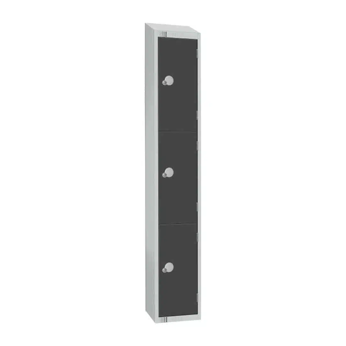 This secure 3 door locker from Elite benefits from a welded steel frame and a hard wearing antibacterial powder coating which is completely effective against MRSA and e-coli. The highly secure and sturdy unit also features a sloping top design which acts to prevent the build up of dust and dirt on the surface to save you time in cleaning tasks, and to stop customers leaving bags or other valuables behind. For a more efficient locker layout, the unit comes supplied with pre-drilled holes in the back so it can be fasted to a wall or nested together in rows. This avoids gaps in between lockers where dust and dirt can accumulate and take extra time to clean thoroughly, but also stops the lockers moving around too much when pushed or knocked, which is typical of a changing room environment with a regularly heavy footfall.