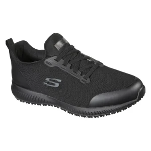 This slip-resistant work sneaker features a lace-up front in a durable mesh knit fabric and synthetic upper. Patented Skechers Arch Fit(R) insole system with podiatrist-certied arch support
