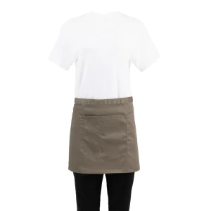 This olive coloured bistro apron from Whites features a shortened length, which reduces the chance of excess fabric being caught up and causing a trip or fall.