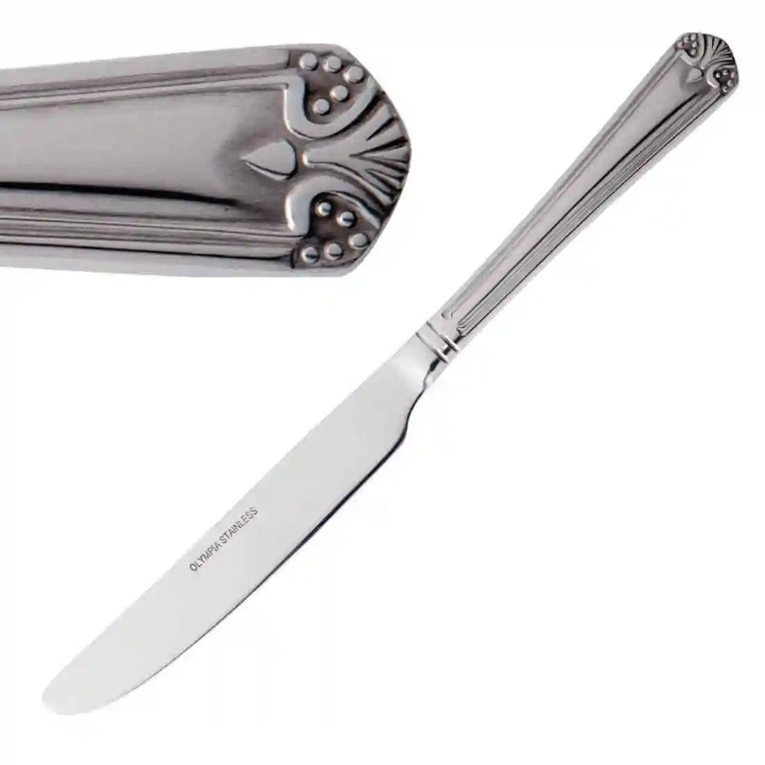 Polished 18/0 stainless steel with a shell motif detailed on the handle. Sold in dozens.