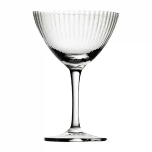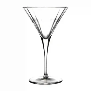 Traditionally, a martini is served in a V-shaped glass, commonly known as a martini cocktail glass. This iconic glass design plays a crucial role in enhancing the drinking experience by accentuating both the aroma and the visual appeal of the drink. The glass’s sleek V-shape not only adds to its elegance but also helps to keep the drink cool by minimising surface area exposure, while the narrow opening concentrates the aromatic compounds, allowing the full scent of the martini to be enjoyed with each sip.
