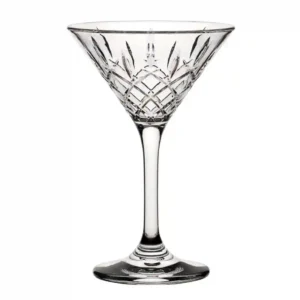 Traditionally, a martini is served in a V-shaped glass, commonly known as a martini cocktail glass. This iconic glass design plays a crucial role in enhancing the drinking experience by accentuating both the aroma and the visual appeal of the drink. The glass’s sleek V-shape not only adds to its elegance but also helps to keep the drink cool by minimising surface area exposure, while the narrow opening concentrates the aromatic compounds, allowing the full scent of the martini to be enjoyed with each sip.