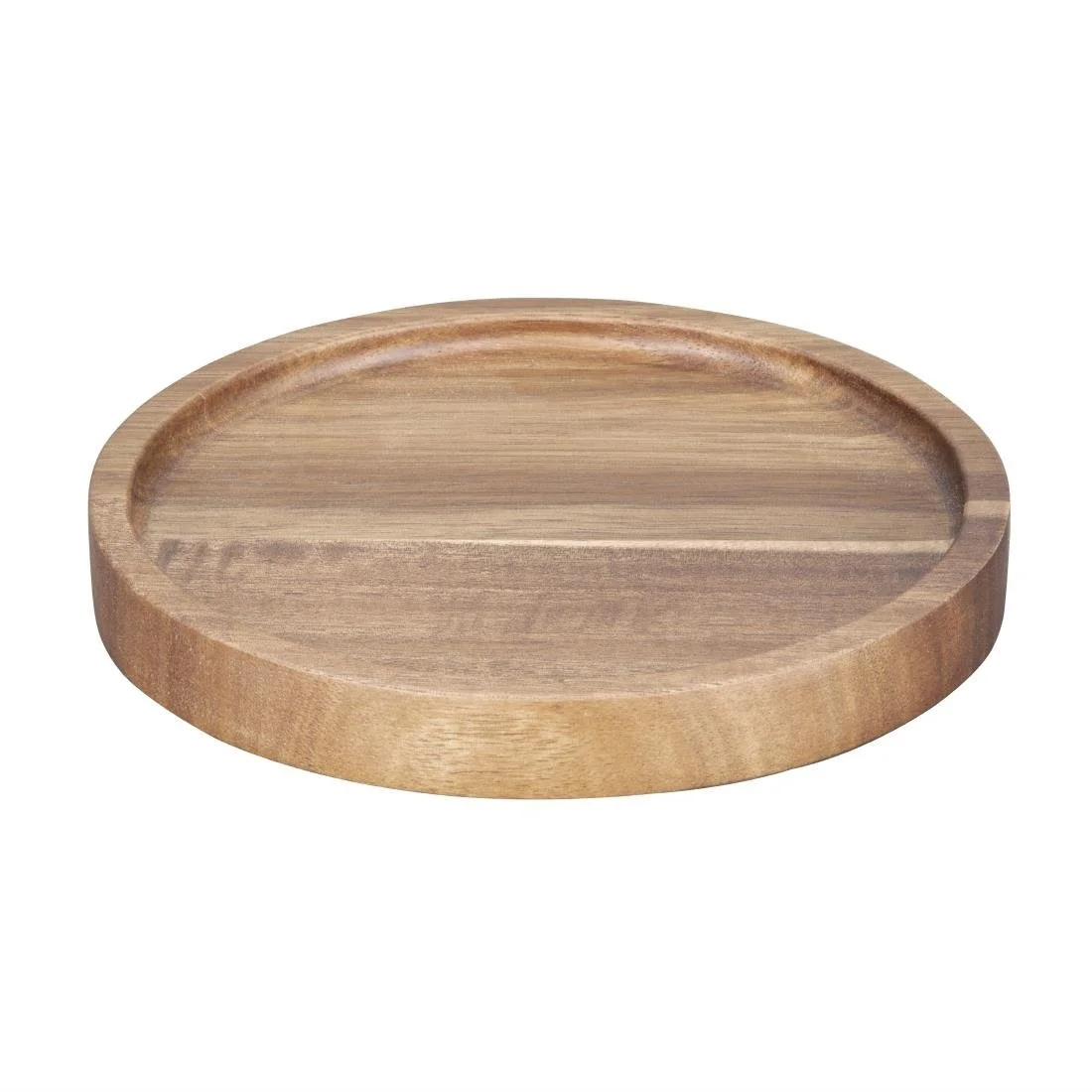 Enhance your table presentation with this Olympia acacia round plate. Its natural, rustic appearance adds a charming touch to your settings, perfect for creating a warm, inviting atmosphere. The durable acacia wood ensures long-lasting use in commercial environments, while also being easy to clean. The plate’s walled sides help keep food neatly contained, making it both practical and stylish for serving gourmet dishes.
