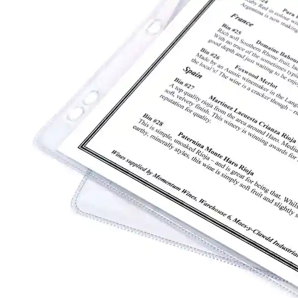 Single PVC Pockets – All Sizes - Menu Cover Accessories