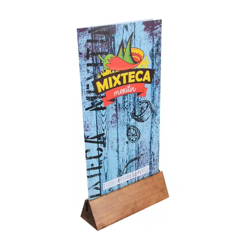 Wooden Base Menu Holders. Our wooden menu holder bases are an add a non-intrustive way of adding a rustic feel to any table top display.