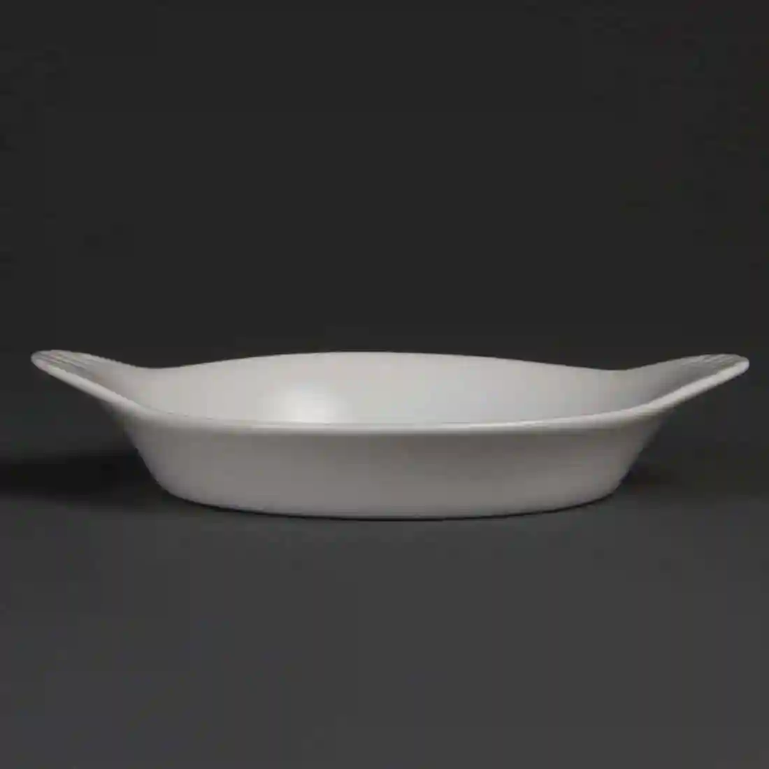 This white, round, eared dish from Olympia is designed to provide a great value and hardwearing porcelain crockery solution for busy hotels, canteens, casual dining restaurants and cafes. Strengthened rolled edges ensure the dish is chip resistant and the fully vitrified body gives great glaze durability, making it ideal to withstand the rigours of the professional catering environment. The dish is stackable, helping maximise storage space, and oven, microwave, dishwasher and freezer proof.