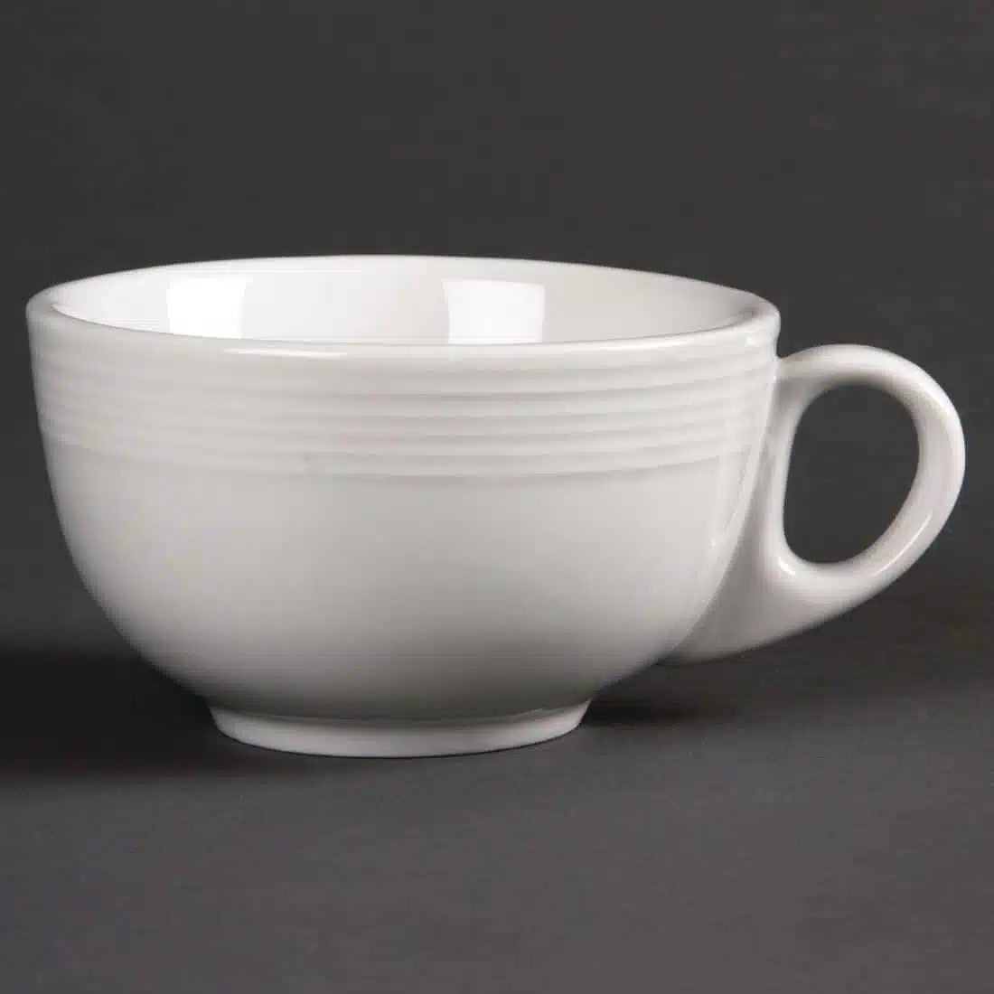 This stylish cappuccino cup from the Linear range by Olympia is made from plain white porcelain and features a delicately embossed lined pattern. The coffee cup is fully vitrified, giving excellent heat and shock resistance and glaze durability, making it robust and able to withstand the rigours of a professional catering establishment.