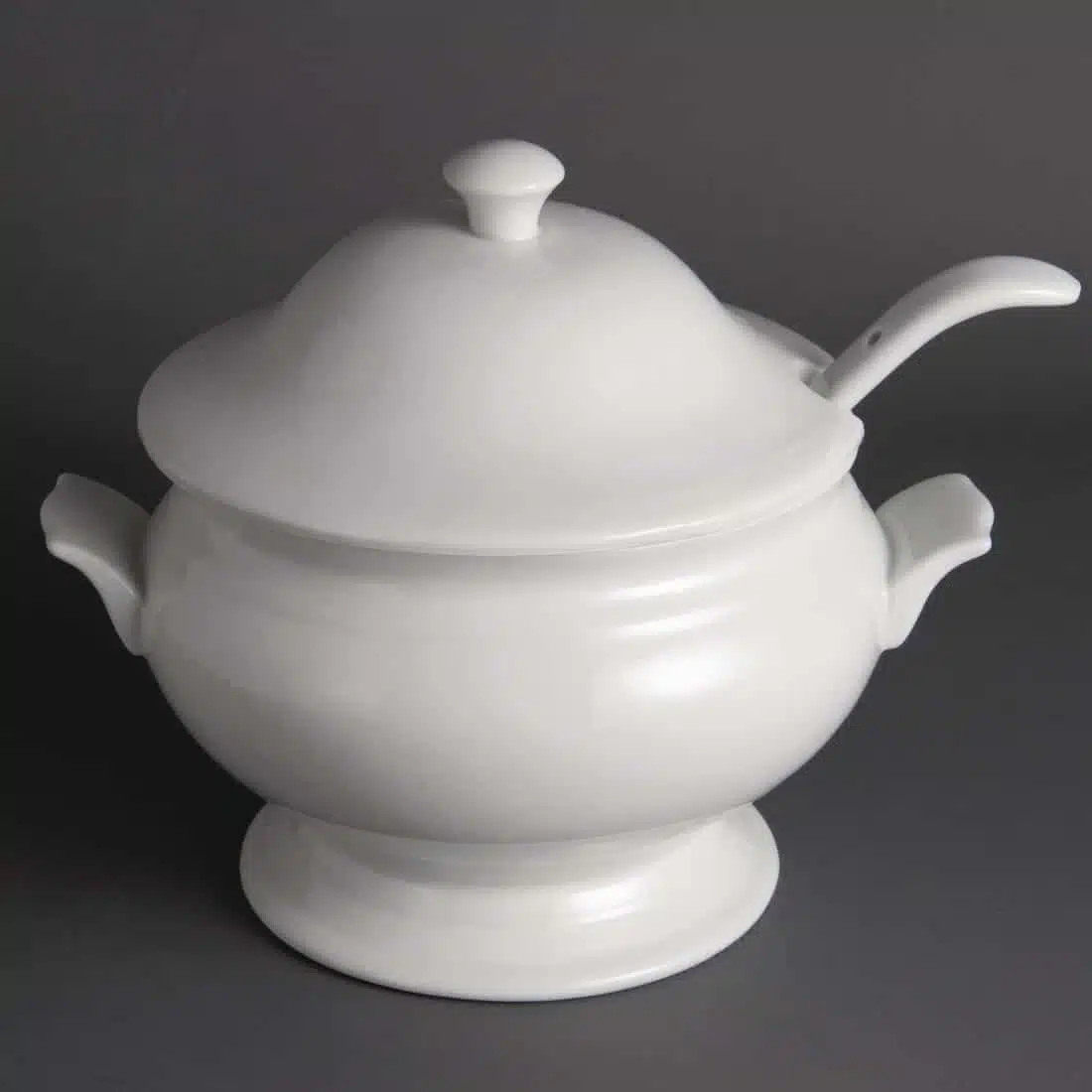This 88oz soup tureen and ladle from Olympia has a soft rolled, chip resistant edge and fully vitrified body. This gives the tureen and ladle great heat and shock resistance and ensures glaze durability, meaning they will stand the test of time in a busy catering environment. Ideal for use in hotels, restaurants or cafes where a durable crockery range is required.