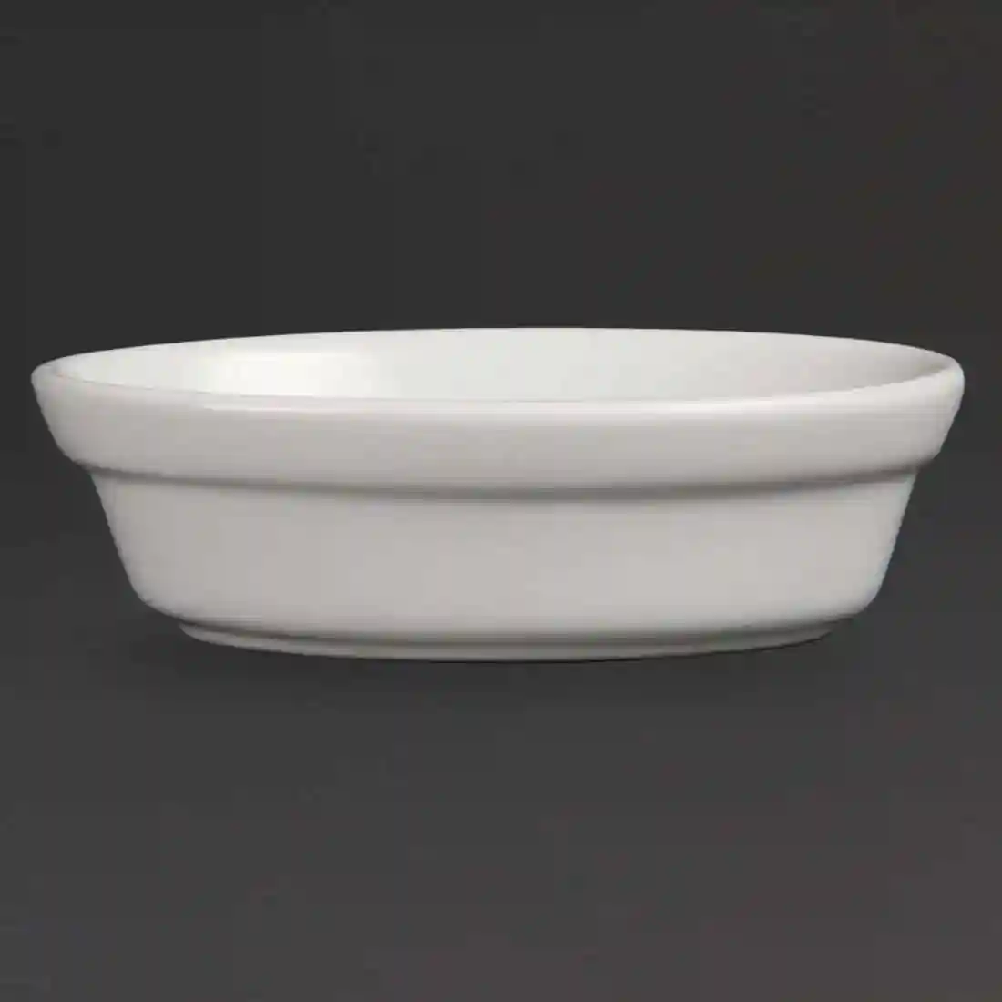 Our great value pure white porcelain oval shaped pie bowls by Olympia are fully vitrified for heat and shock resistance, the ideal crockery for hotels which want simplicity.