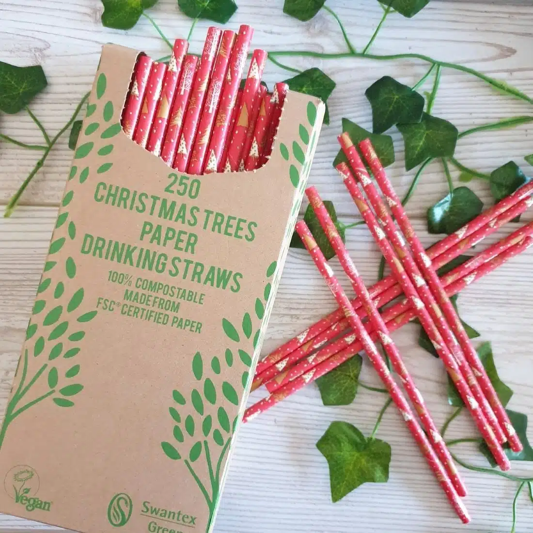 Add a festive feel to your drinks service with these Christmas Tree design compostable paper drinking straws.
