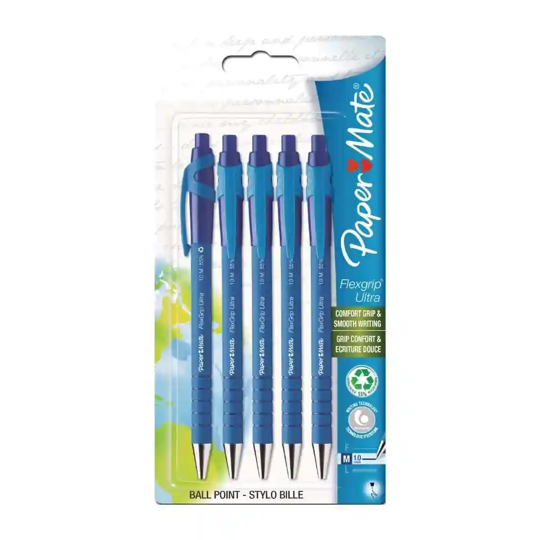 Paper Mate® Flexgrip® Ultra comes in 55% recycled material and provides even brighter and more vivid lines.