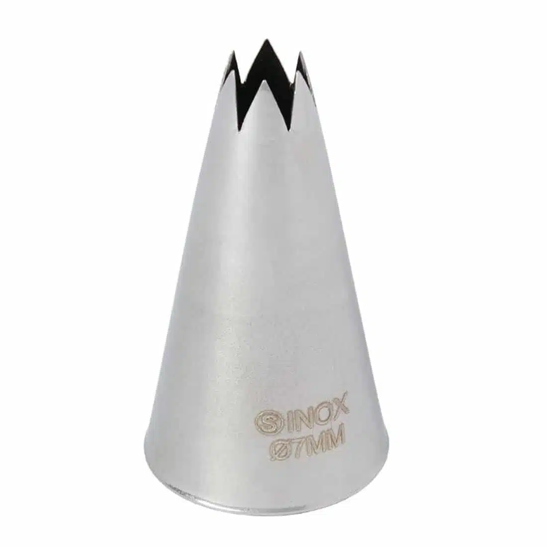 This 7mm stainless steel star tube is perfect for creating precise and accurate star shapes on cakes and pastries. The strong stainless steel construction makes them extremely durable and easy to clean, perfect for professional use. It can be used with all types of piping bags too, making it a great addition to any baking arsenal.