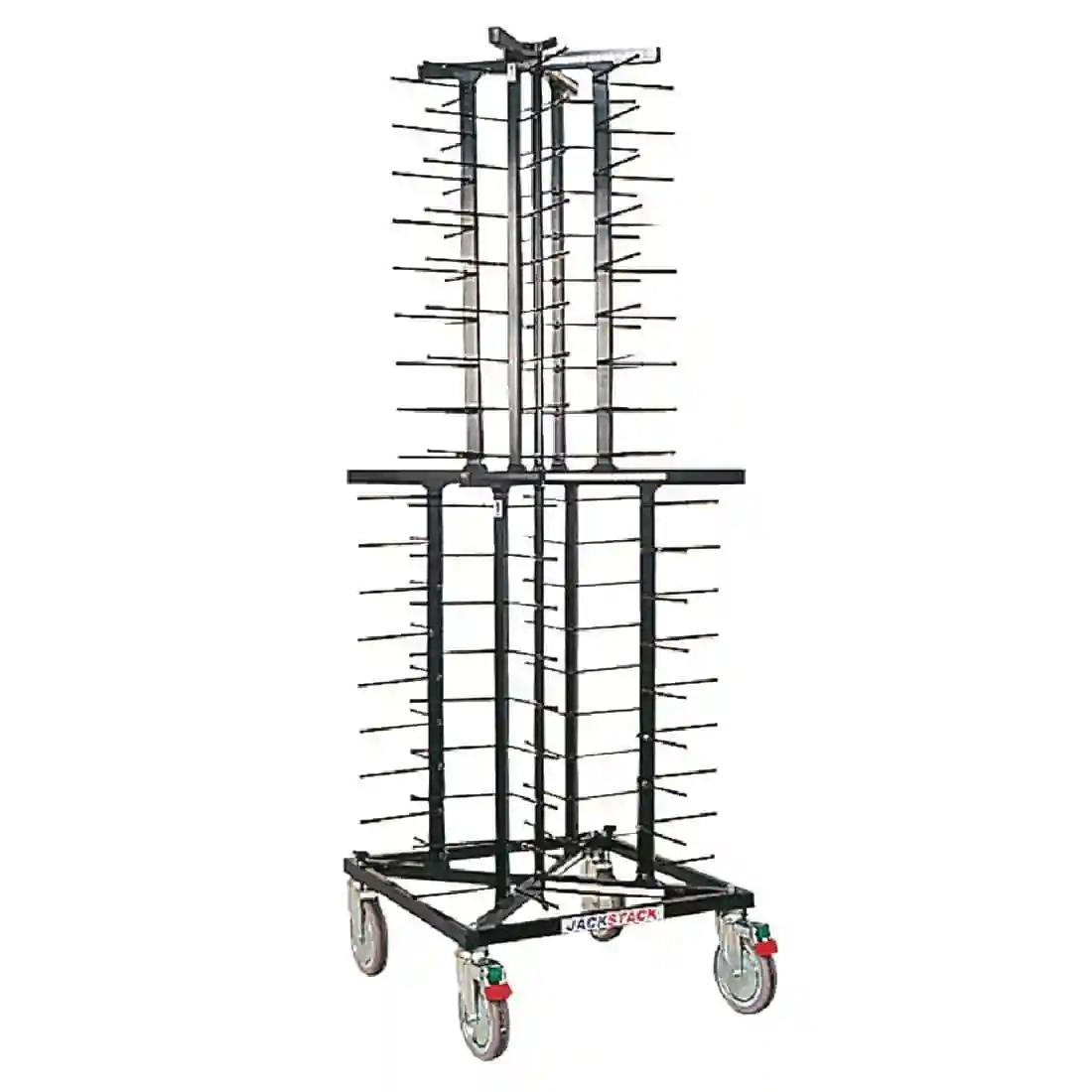Combat your space problem with Jackstack plate racks. Easily move the vertical plate tower in a minimum time to storage, banquet or dishwashing area. 20% less labour, 25% less serving time, plus 30% more space.