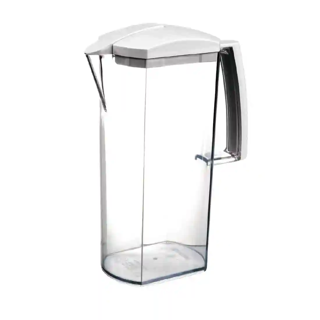 Rectangular shape with lid, ideal for storing liquids in fridges. Dishwasher safe.