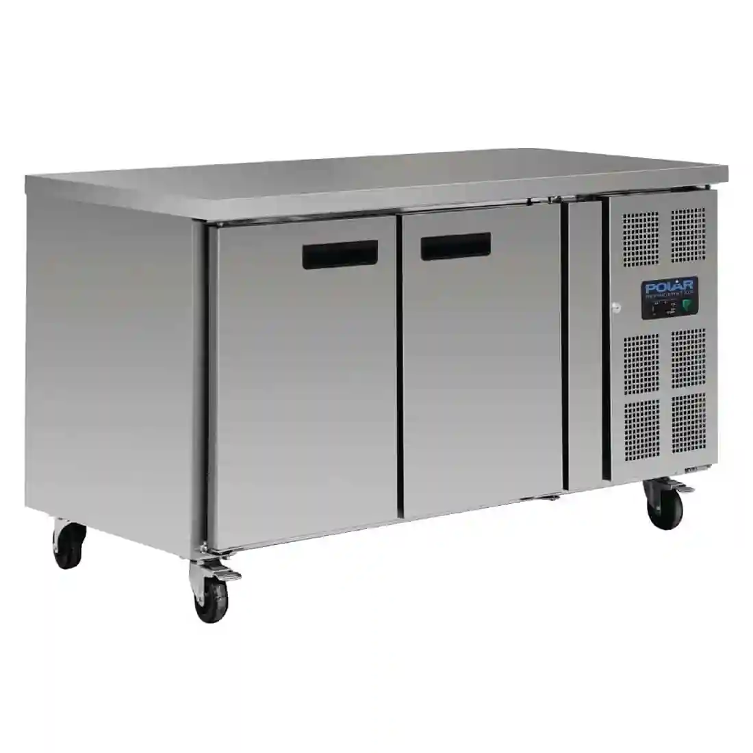 The Polar U-Series two door counter fridge is designed for the busiest commercial kitchens, thanks to its impressive refrigeration capability and solid professional build quality. With a full 50mm of effective insulation and forced air cooling, the fridge is highly efficient and keeps the contents cool even when the kitchen reaches temperatures up to 43°C. Stainless steel construction makes the counter highly durable and easy to clean, whilst the sturdy worktop is ideal for food prep or smaller countertop appliances which helps you to save vital work-space.