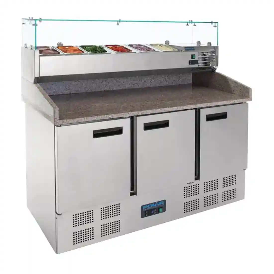 Stainless Steel Finish With Marble Worktop. Gastronorm compatible. 3 Door