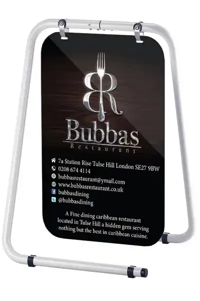 A board pavement signs are an old marketing favourite with the restaurant, pub, hotel and B&B trade. They are a fantastic way of gaining passing trade and are often celebrated (this is exciting stuff if you’re a busy restaurateur) because of their versatility and simple-to-use structure. Furthermore, if you’re located on a busy high-street with other restaurants, pubs and cafes all scrambling to bring in the punters, what better way to stand out from everybody else with a unique, aptly placed sign?